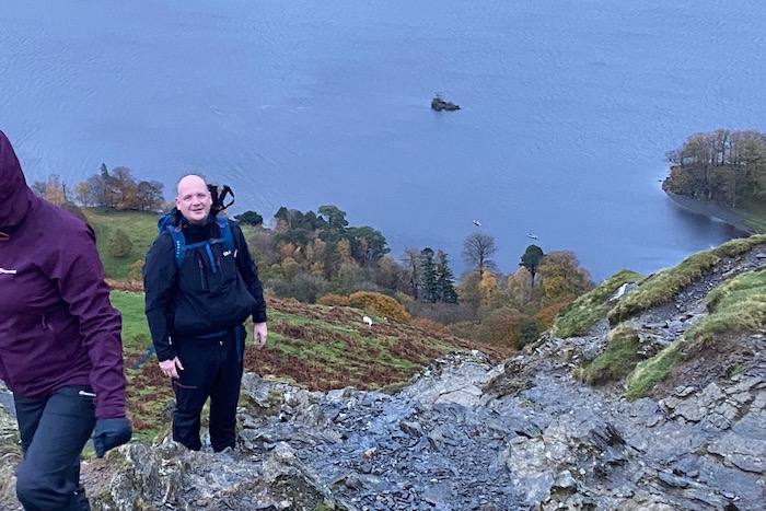The walks begins at the bus stop, follow the finger-post sign signaling ‘Cat Bells summit – 1 mile’ and keep left when the path forks. The path is rocky and uneven and there are stone step sections as you climb higher. There is a nice scramble near the memorial stone to Thomas Arthur Leonard. Continue ahead as you head over Skelgill Bank. This next section is relatively straight forward but you do need to take care and ensure 3-points of contact for safety especially in bad weather. For those with shorter legs (like Louise) you may need to use a knee to get up this section. After this there is one final climb to the summit of Cat Bells.