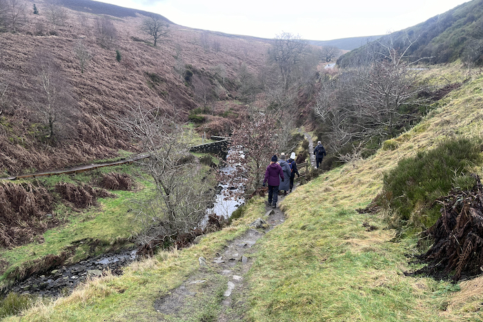 From the car park head up the slope, past the information board and then take a left (keeping the stone wall to your left). Follow this track along for awhile until it eventually brings you out back on the road. Cross over to the other side and head through the gate at the side. Known as the ‘Riverside Path’ the track leads down to the River Goyt. The track leads to some steep steps which will return you to the road side again. Here take a left and walk along a short distance where you reach a bench. A good spot for a quick refreshment break and to take in the view. Take the narrow path leading down to the Packhorse Bridge. Cross over the bridge and head left heading back alongside the opposite side of Errwood Reservoir.