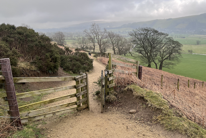 Follow the lane between the houses and exit the village. After approximately one mile the lane ends at the entrance to Woodseats Farm (The Liggate). From here there is a tree-lined bridleway directly ahead of you. On reaching open country, turn half-left and follow the obvious path angling up the hillside. At the top of the ridge (Hollins Cross) turn left and follow the paved path towards the summit of Mam Tor. From the summit head back to the top of the ridge at Hollins Cross. Take a left down the path which descends steeply towards Edale. At a fork, take the right path along a wall. At Hollins farm, keep left crossing a short boardwalk and down a flight of steps.