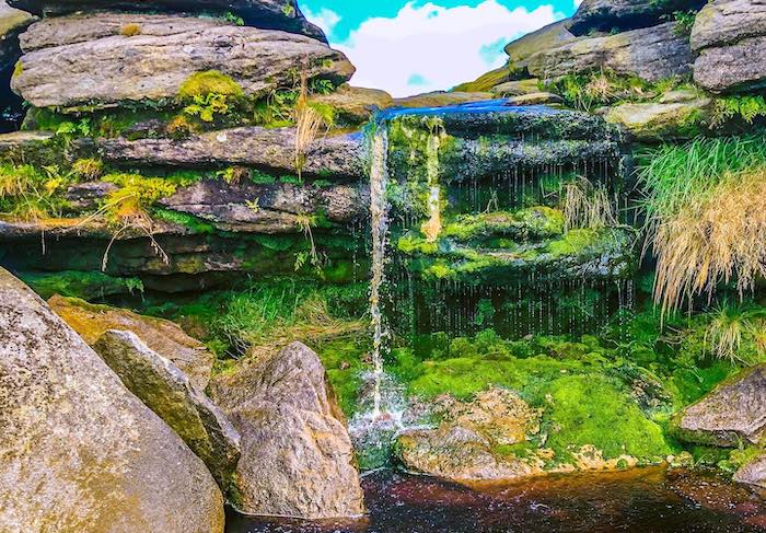 This path winds around and you will cross the stream numerous times, so be prepared to have your feet in water at some point. Don’t be too concerned with picking the exact path, as it does often split into different ones, but they all come back together anyway. This section is probably the trickiest in terms of steep ascent and the winding path, but is also a really enjoyable part of the walk. There are steps towards the top to assist your ascent. As you reach Ashops Head and the Pennine Way joins the path take a right. Carry on along the ridge to Sandy Heys. We stopped off for a quick sandwich and a drink along here. You will reach a point where the path turns to the right at Kinder Downfall – this bit can be relatively simple or tricky depending on recent rainfall, so always take care when crossing.